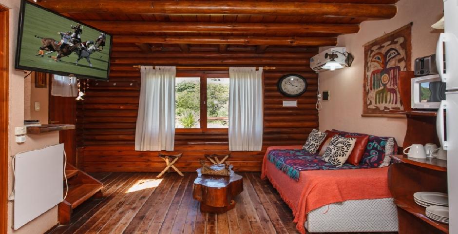 Cabaña amplia y acogedora para 5 personas. Equipada con calefacción, aire acondicionado, TV por cable y cocina completa. Disfruta de todas las comodidades en un entorno natural. ¡Perfecta para familias o grupos de amigos que buscan confort y calidez!